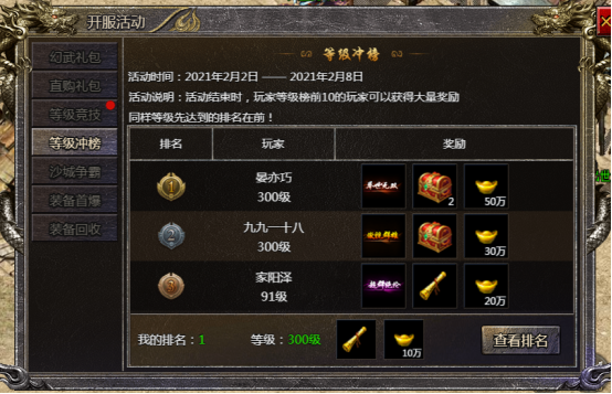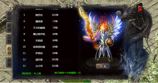 排行榜即提供一个玩家排名的功能,可以在此看到和自己一个服的其他大神级的玩家。不同的类别排行依据不同。