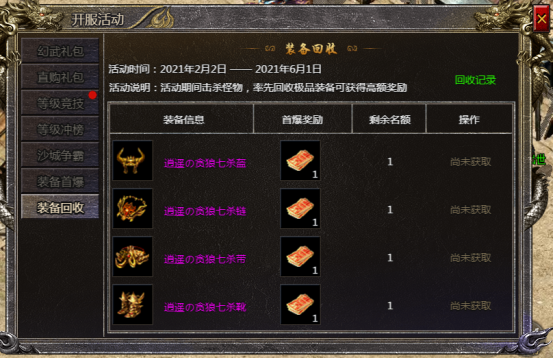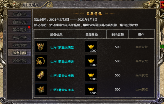 开服之后开放的活动,不仅可以买到超值的特惠礼包,玩家还能争取获得装备首爆和装备回收的灵符