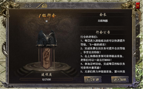 等级到达30级可开启行会系统,行会系统是游戏中很重要的一个社交系统,玩家可自己创建行会,也可加入别人的行会,加入行会之后玩家就再也不是一个人在游戏了。玩家可以在行会里找到志同道合的朋友组队一起去刷怪了。加入行会还有很多行会活动可以参加,获得奖励