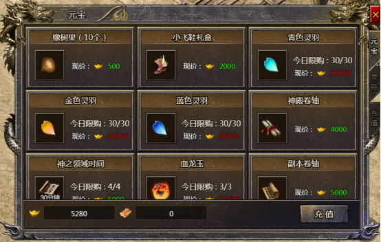 玩家可以商城内购买到想要的材料、药品、装备宝箱或其他道具,在游戏中更好的畅玩体验